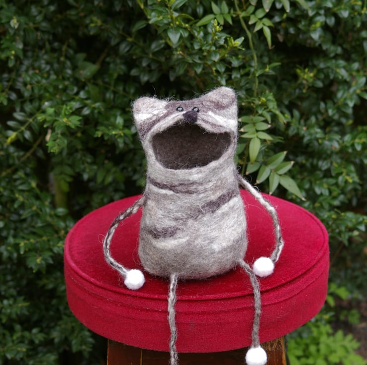 A delightful home decor accent and a wonderful handmade gift this felted cat brings coziness joy and a touch of whimsy to any space