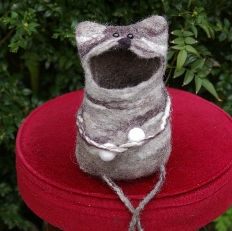 Charming handmade cat box crafted from natural felted wool Soft warm and full of personality this unique piece is both decorative and functional