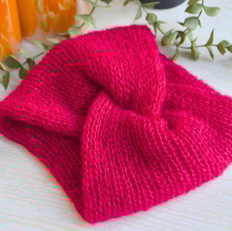 Knitted Headband Earwarmer Soft Alpaca Silk Crimson Red Ready Made