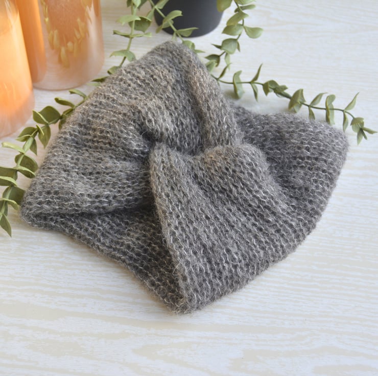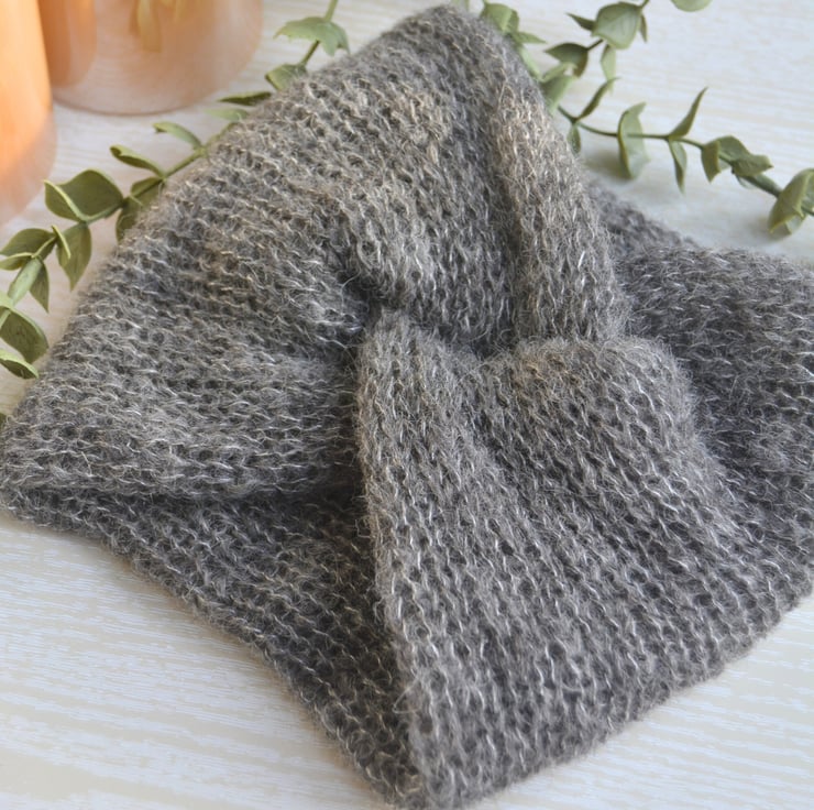 A sumptuously soft deep headband with a twisted front. It really is like wearing a cloud! This squishy lightweight and luxurious blend of brushed alpaca and silk is kind to hair and very warm! Simply pop over your hair as it is or over a messy bun (great for 'bad hair' days) and adjust the twist, then you're good to go! Whether its a walk around town or out in the country, this headband is sure to become a firm favourite. If the colour shown isn't for you why not check out the other 19 colours in the shop (subject to availability).