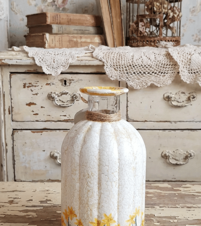 This Vase has been painted yellow & white & has a crackle glaze finish.