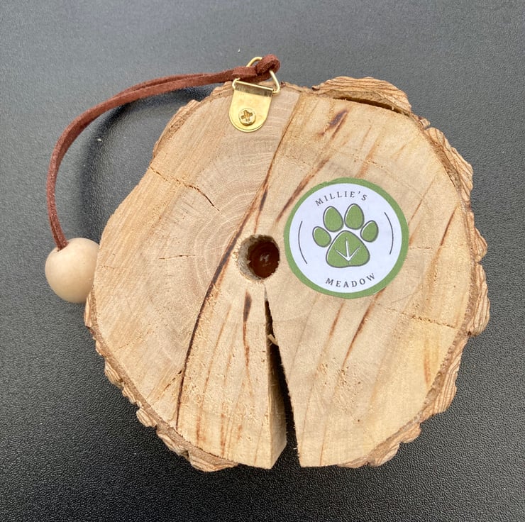 This wood slice is chunky so can also free stand on a shelf by simply removing the cord.