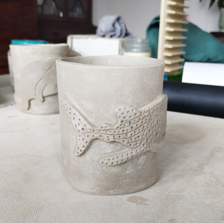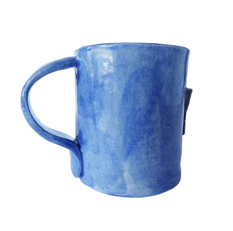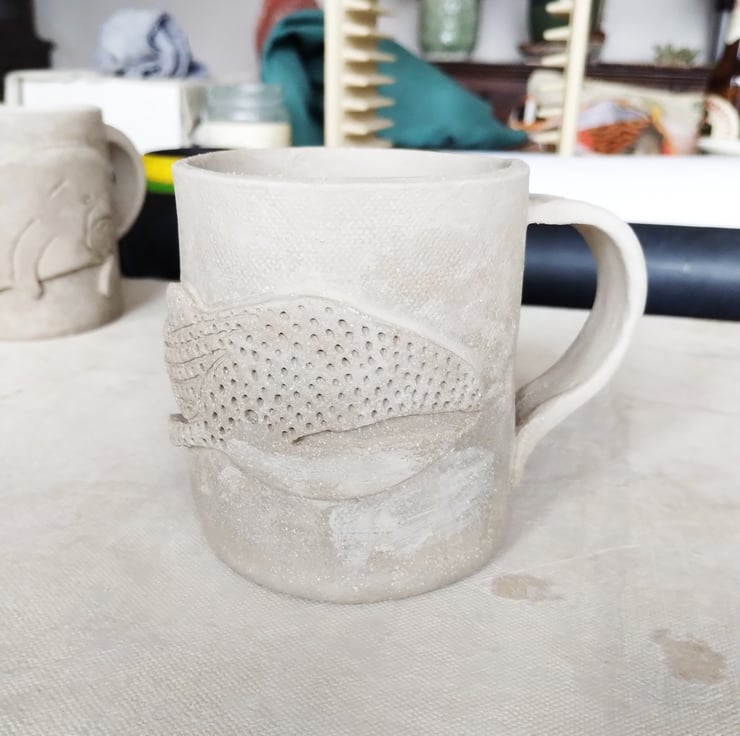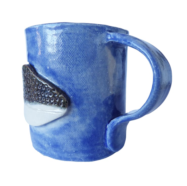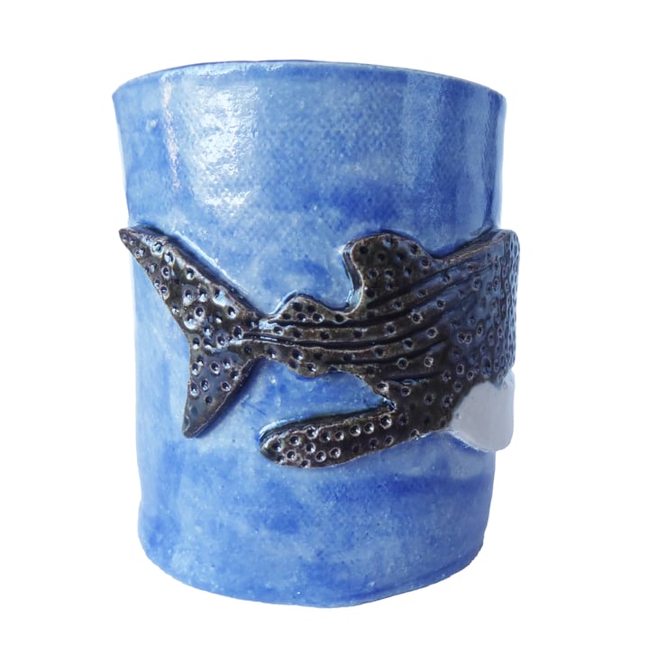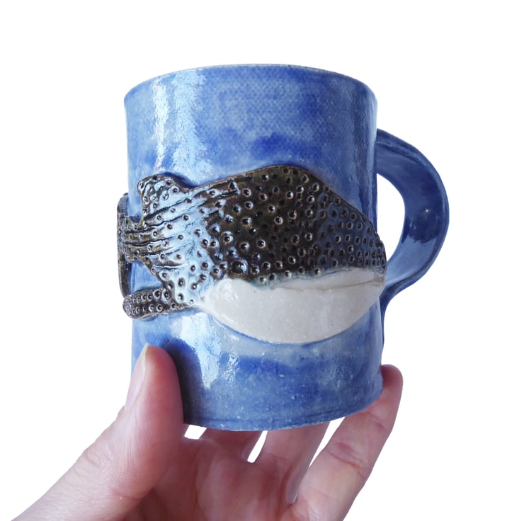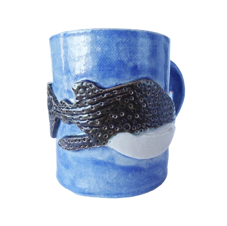 Whale Shark Stoneware Pottery Mug. Hand Built from Scratch with Relief Whale Shark Decoration.