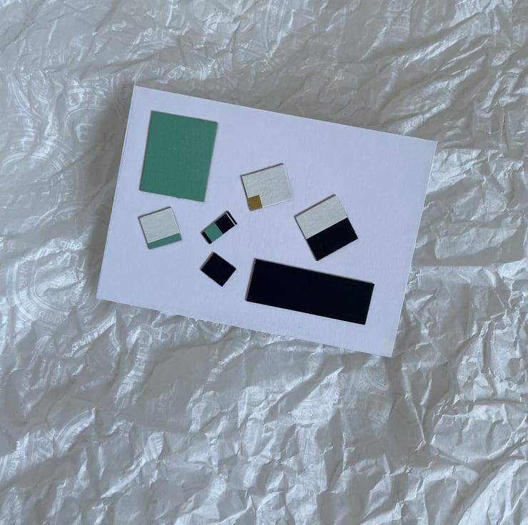 Materials: white card 300gsm; water-based glue; upcycled colour-printed card