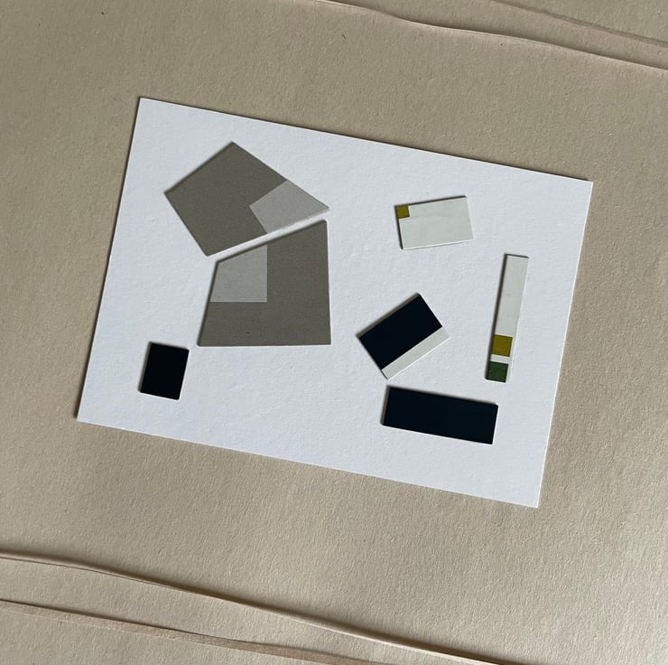 My collages include upcycled card and small imperfections are part of their charm.
