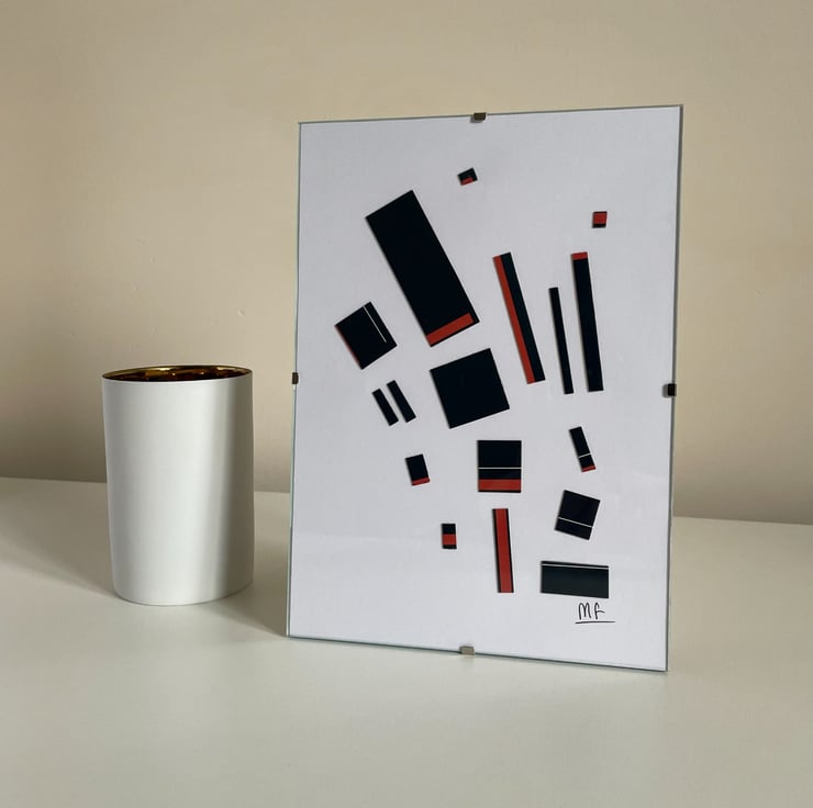 Plastic-free packaging. The collage is wrapped in tissue paper and a protective sleeve and mailed in a board-backed envelope.