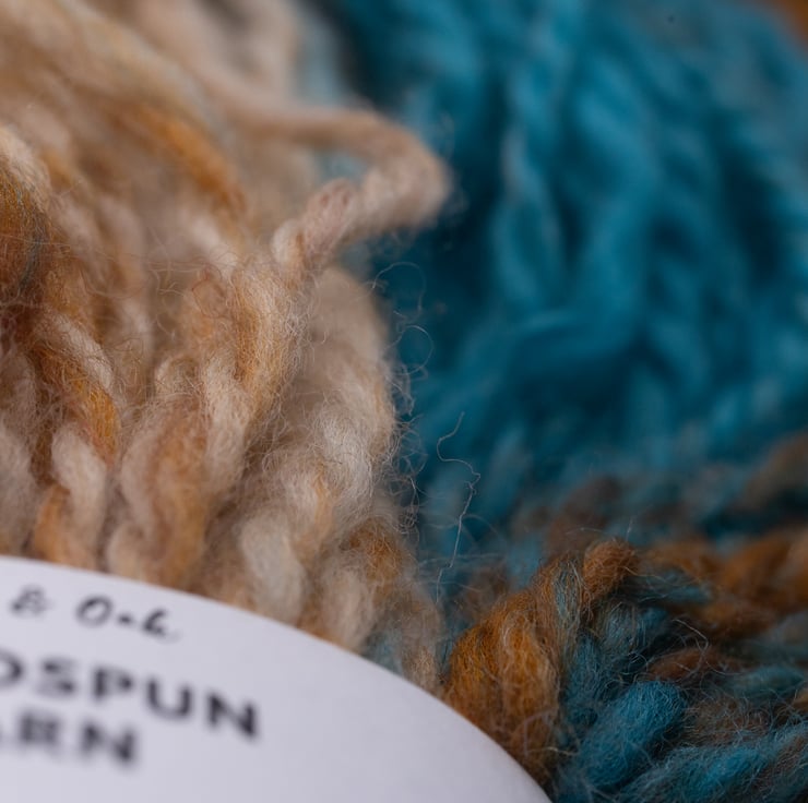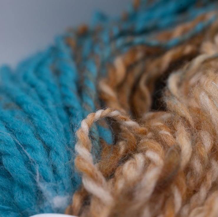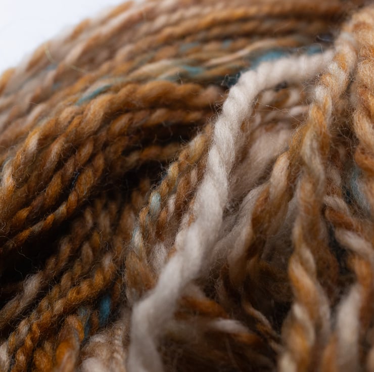 Turquoise and brown handspun yarn suitable for weaving, crochet, knitting and other fibre art projects.