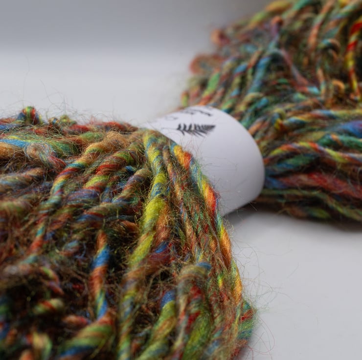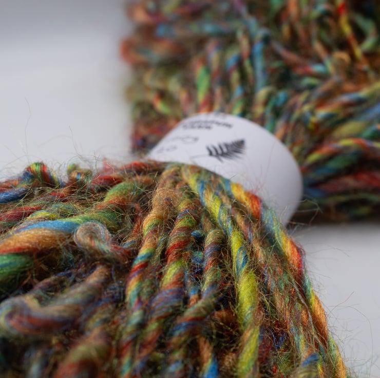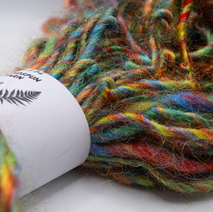 Handspun yarn suitable for weaving, crochet, knitting and other fibre art projects.