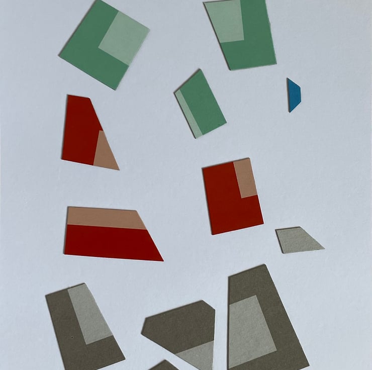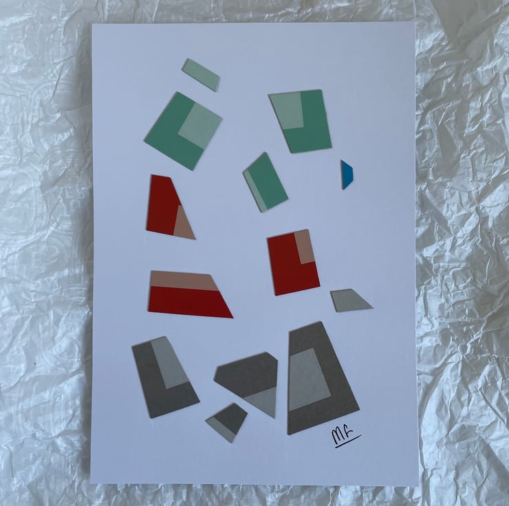 Materials: white card 300gsm; water-based glue; upcycled colour-printed card