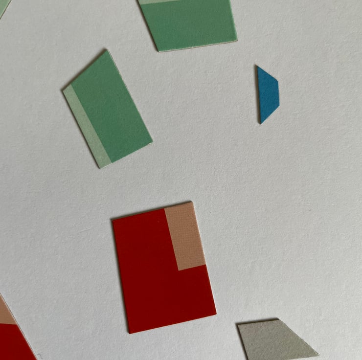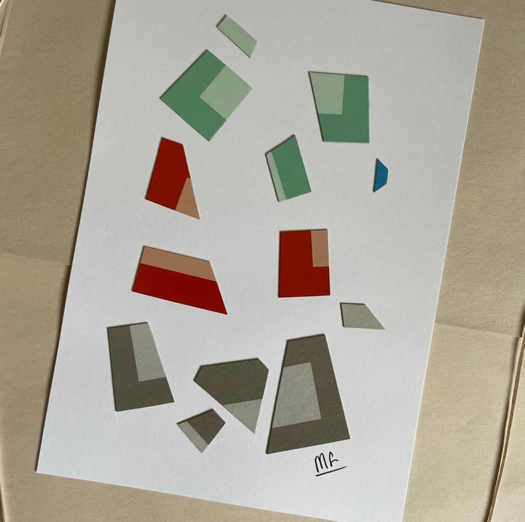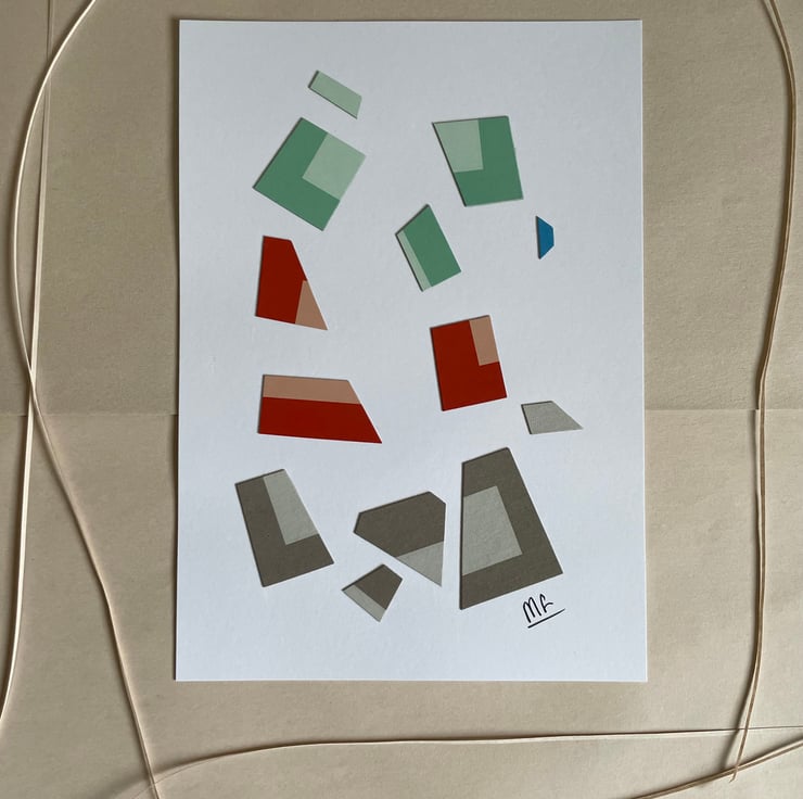 My collages include upcycled card and small imperfections are part of their charm.