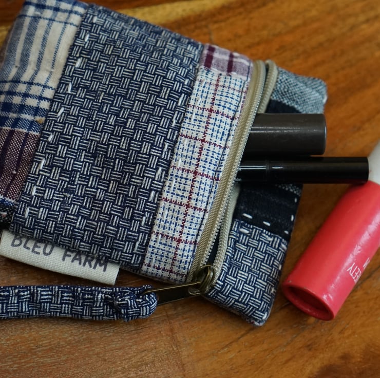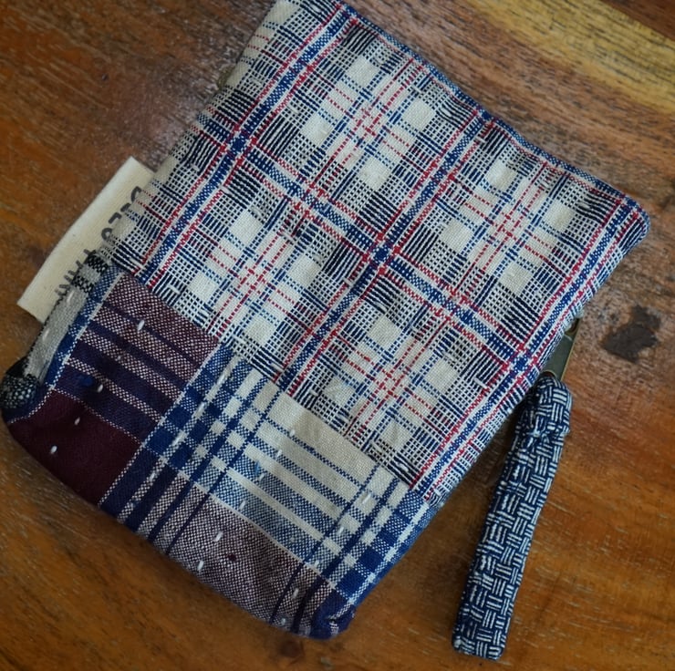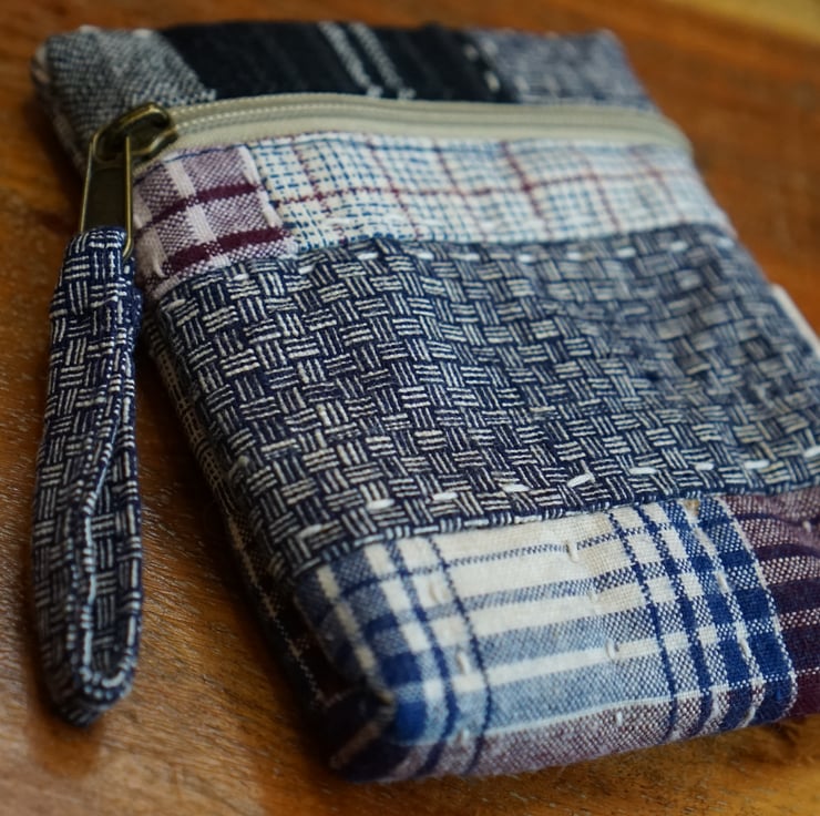 This pouch is made from patchwork of vintage handwoven cotton, full of texture and character. Woven many years ago on traditional wooden looms, the fabrics carrie small irregularities that reflect the human hands that created it.