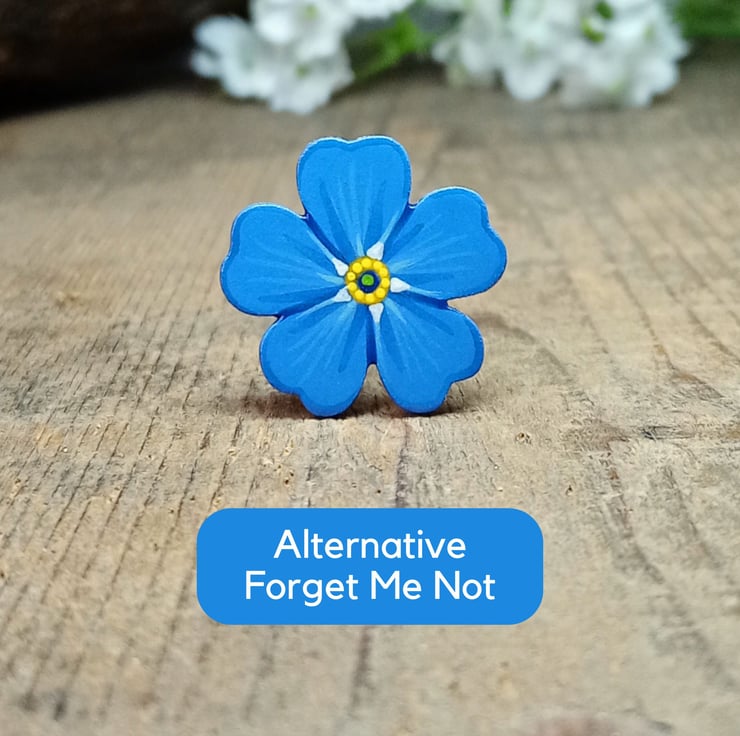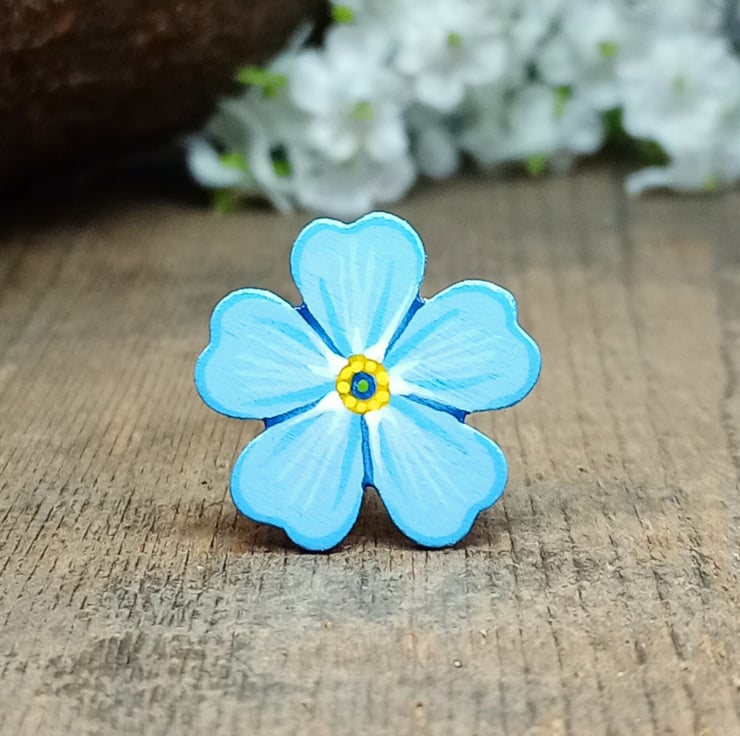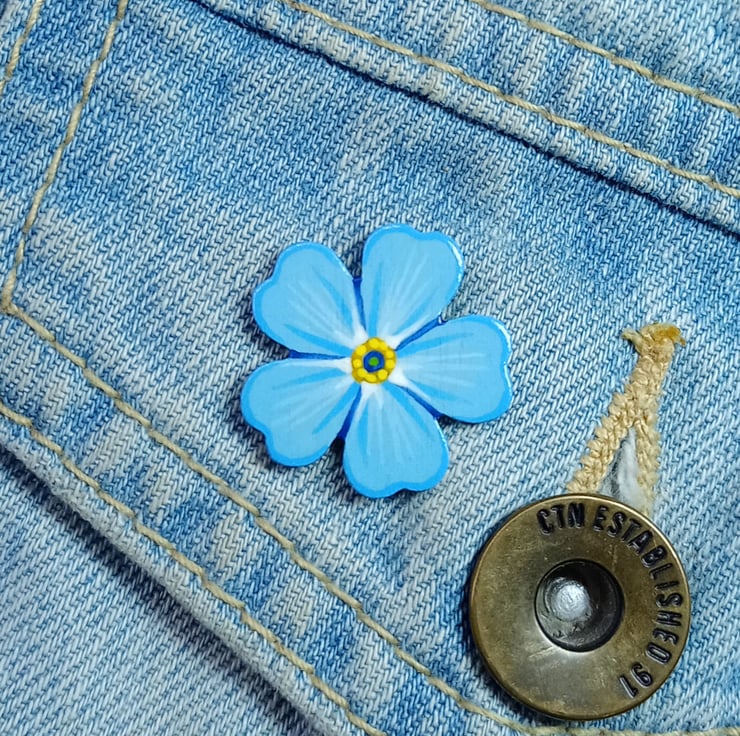 Handmade Forget Me Not Pin, hand painted forget me not brooch, remembrance jewellery, bereavement gift, memorial keepsake, funeral favour or meaningful something blue for a bride.