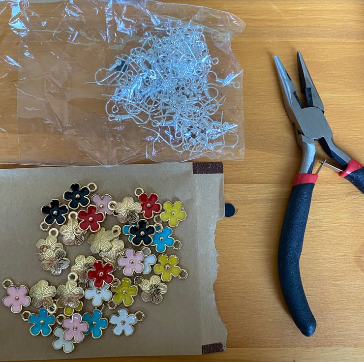 One pair of flower earrings , colour is randomly selected from white, red, pink, yellow