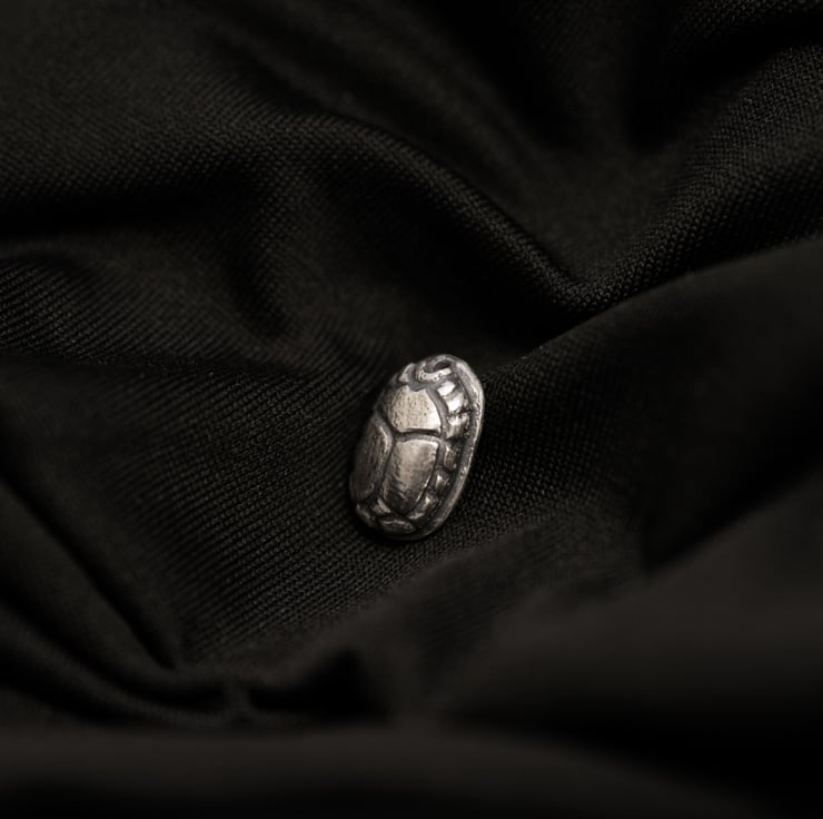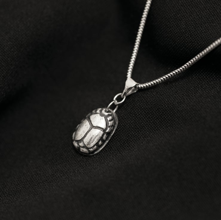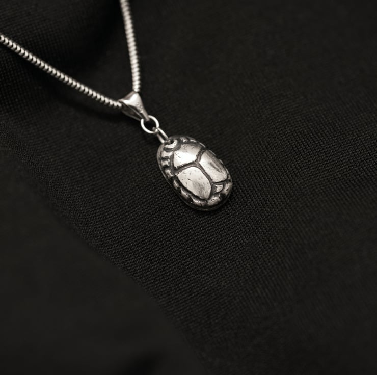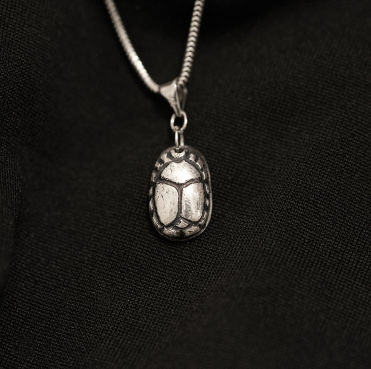 Delicate and meaningful, this mini handmade sterling silver scarab pendant is inspired by the sacred beetle of ancient Egypt, a timeless symbol of renewal, transformation, and protection.