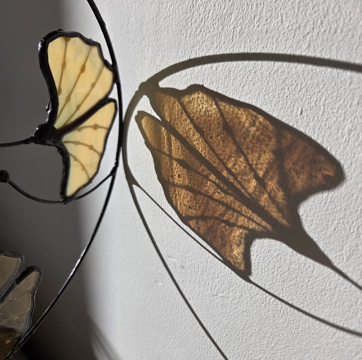 The glass catches the light beautifully, showing off subtle variations in colour and texture throughout the leaves. Whether hung in a sunny window, or against a favourite wall, it adds a peaceful, natural touch to any room.