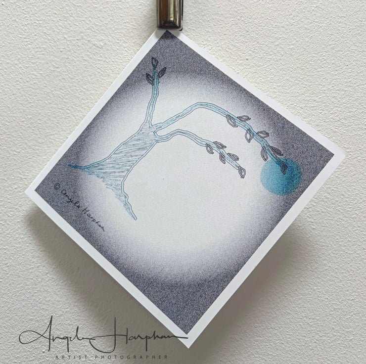 One of my graphic images created on the iPad, this one in turquoise with winter white leaves. Could be used a sympathy card, though you could use it for for any occasion where a reflective and hopeful mood is required, or simply to mark the seasons.
