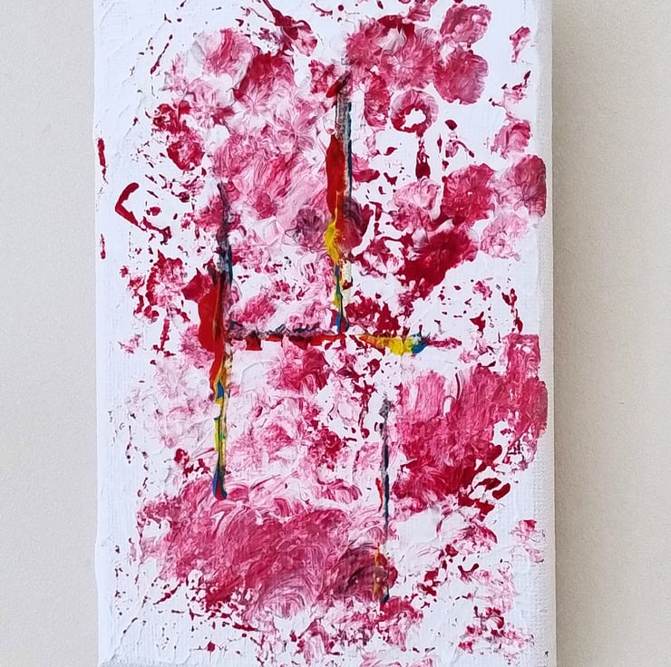 Measuring 10cmx15cmx1.2cm, this small-scale canvas is perfect for adding a pop of contemporary energy to a gallery wall, a desk space, or a cosy nook.