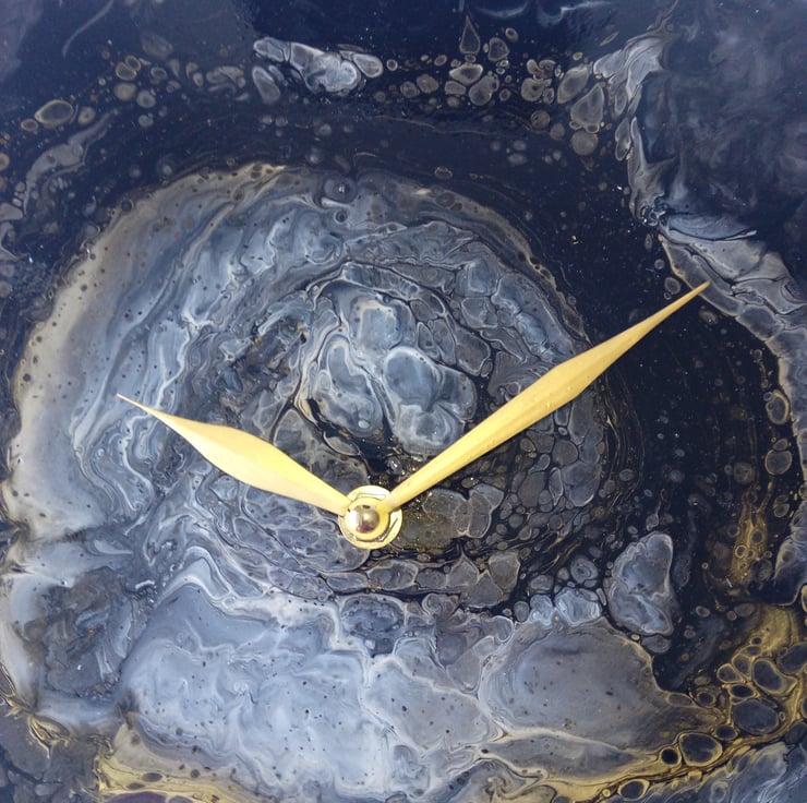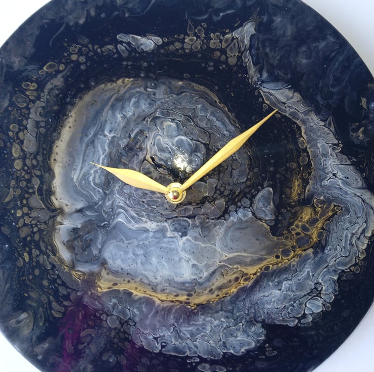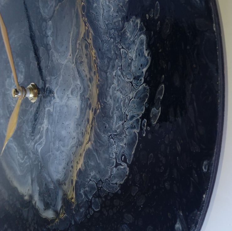 "Obsidian Whispers" Hand-Painted Fluid Art Wall Clock, Silent Home Decor