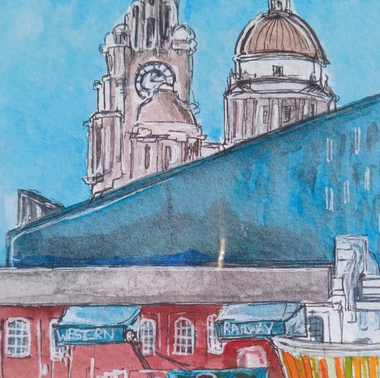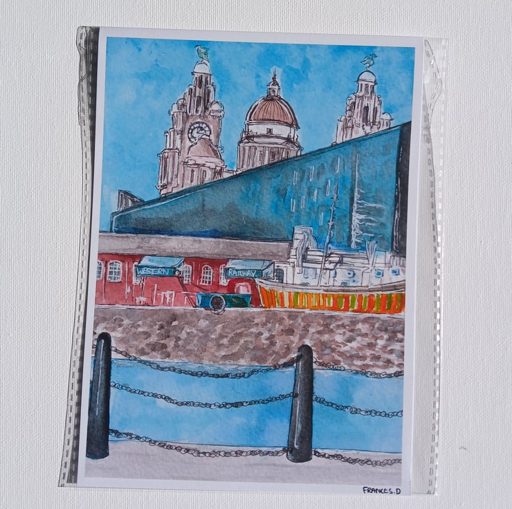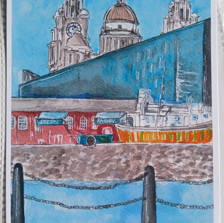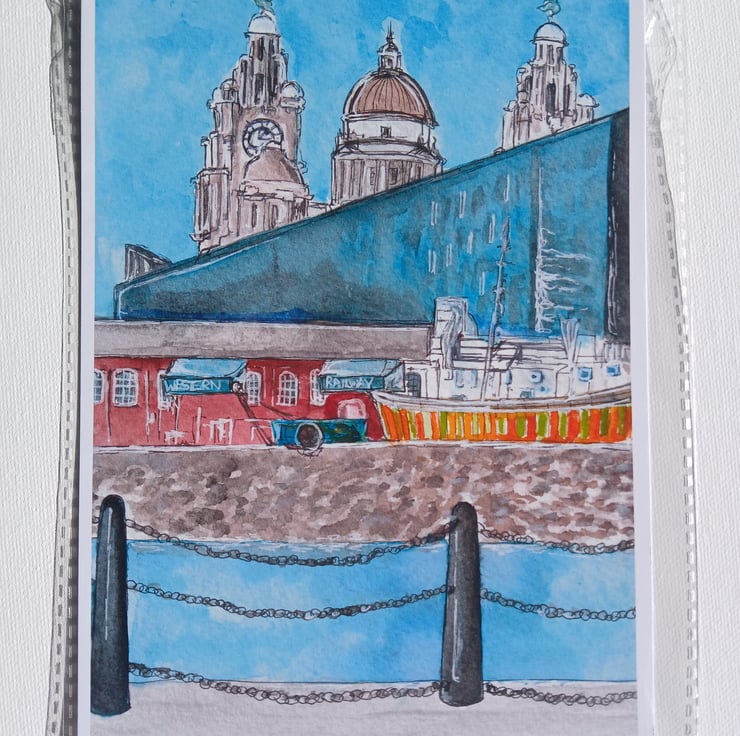 Albert docks view liverpool watercolour print A5