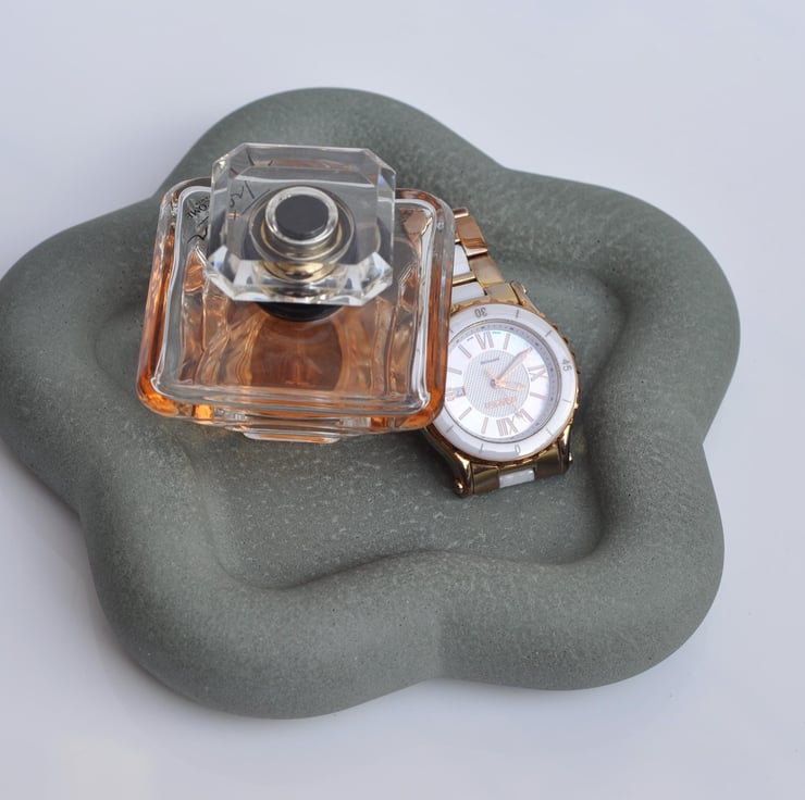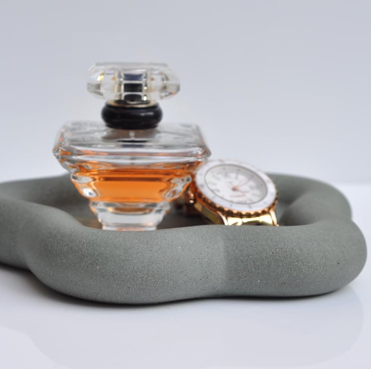 Hand-poured concrete flower tray, offering a minimalist and functional design. Perfect for holding candles, keys, jewelry, or as a decorative accent.