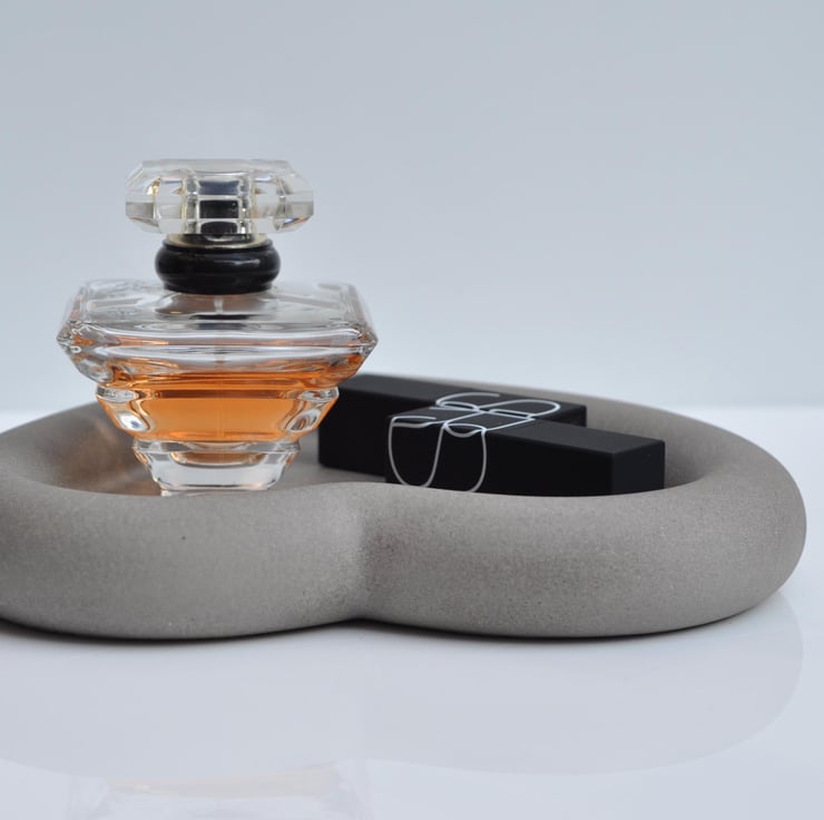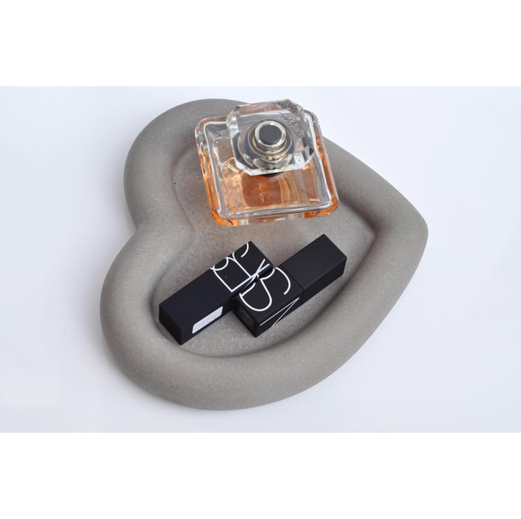 Handmade Concrete Tray Heart Modern Vanity Decor - Minimalist Tray for Bottles, Candles, Jewelry, Keys Modern Decorative Tray Industrial Home Decor - Grey