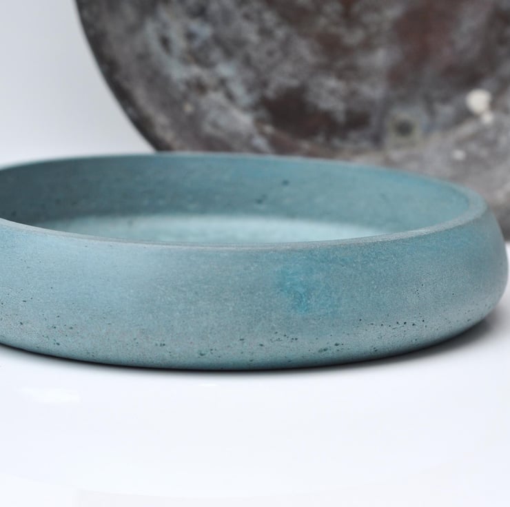 Large Concrete Bowl: Heavy Handmade Cement Home Decor Storage Dish Grey Blue