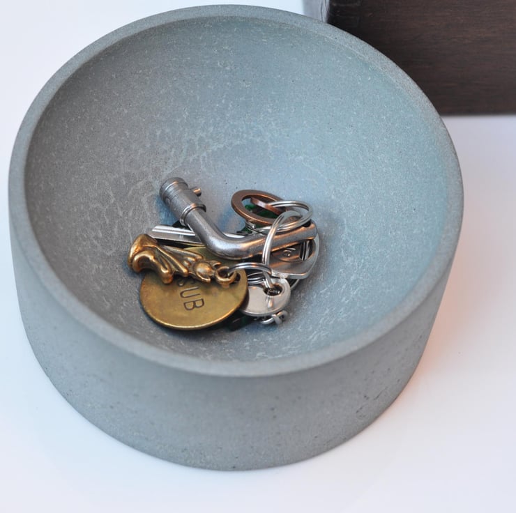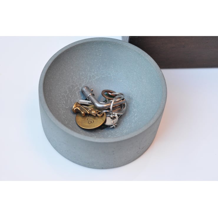 Medium Concrete Bowl: NEW Handmade Minimalist Cylinder Key & Jewelry Dish Steel