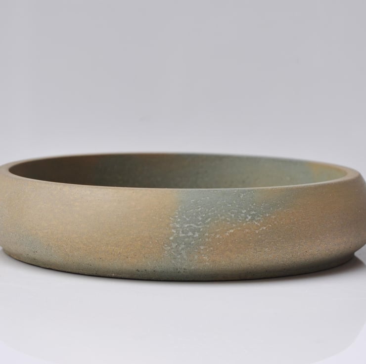 Hand-poured Medium Concrete Bowl Grey Green, Yellow