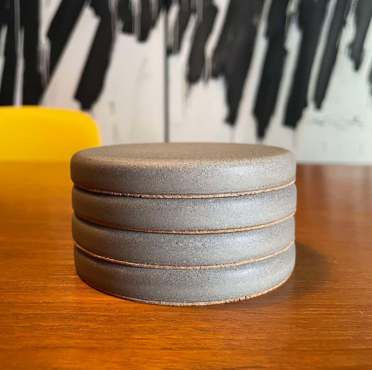 Hand-poured concrete coasters, designed for both style and practicality. This set of 2 coasters features a sleek, minimalist design, perfect for protecting your surfaces from drink stains while adding a modern touch to your home or office. Ideal for cups, glasses, or mugs, these coasters help keep your furniture clean and dry while offering a unique, industrial aesthetic.