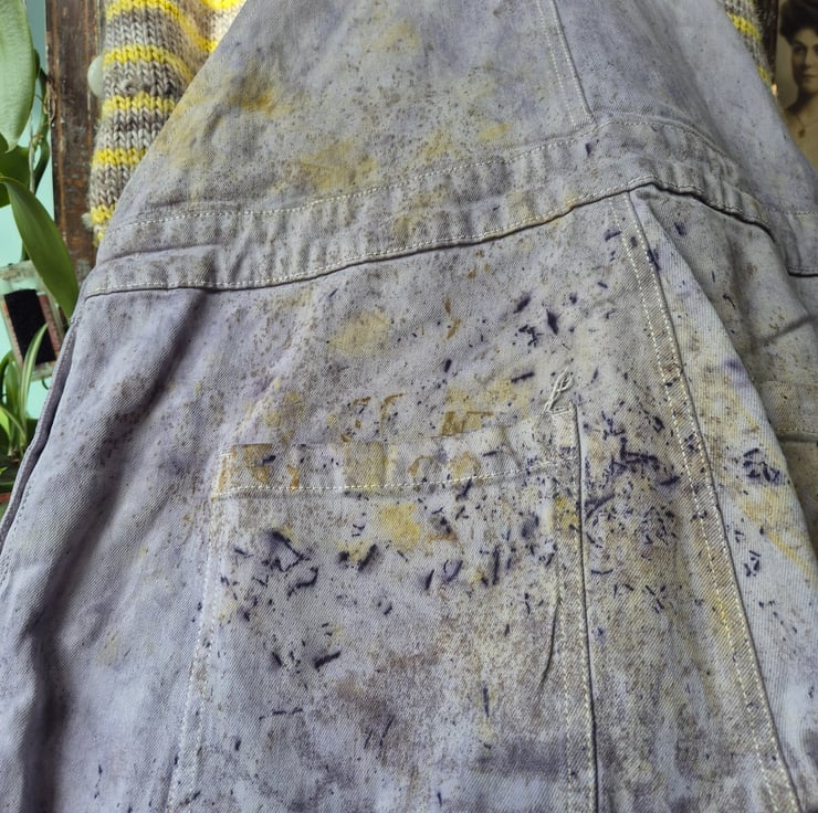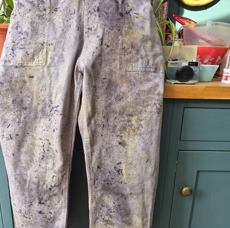 Beautiful reimagined second hand cotton dungarees, I love to work with quality second hand pieces to give them a new lease of life using natural foraged plants and natural extracts.