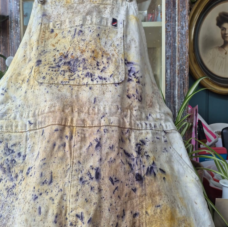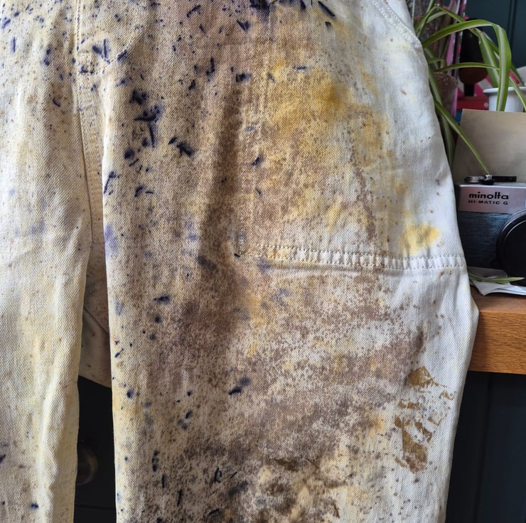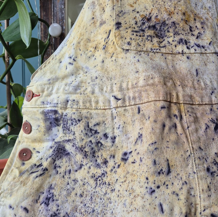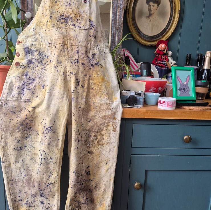 Beautiful reimagined second hand cotton dungarees, I love to work with quality second hand pieces to give them a new lease of life using natural foraged plants and natural extracts.