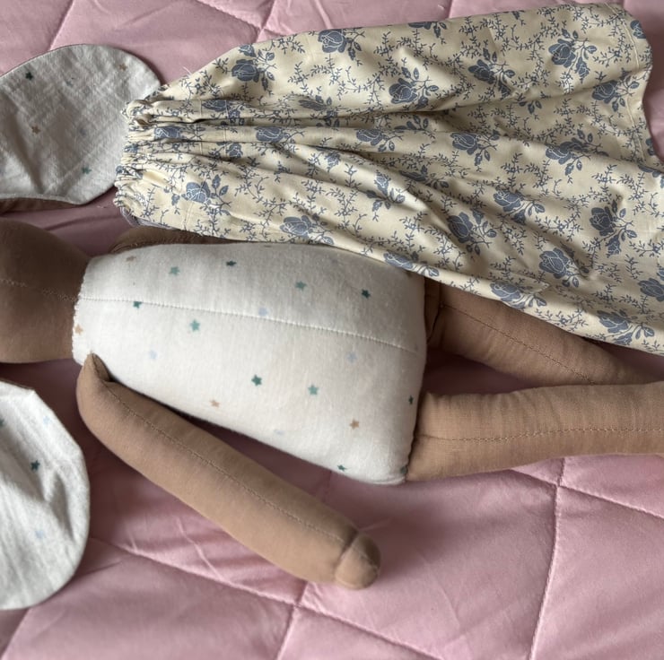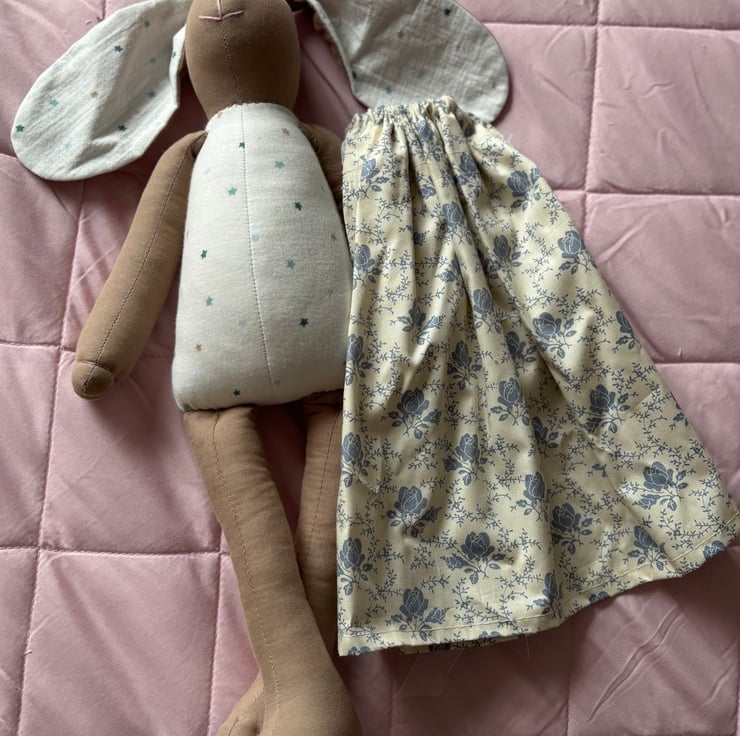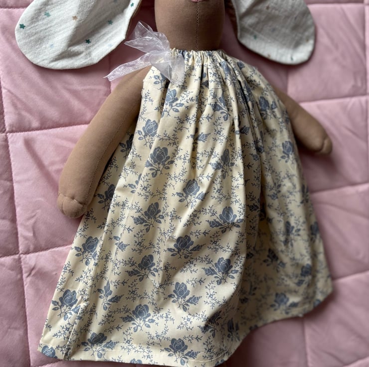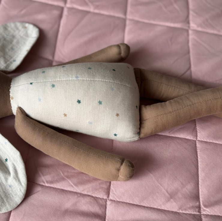 Body and front ears of bunny made from two layers of 100% cotton muslin fabric