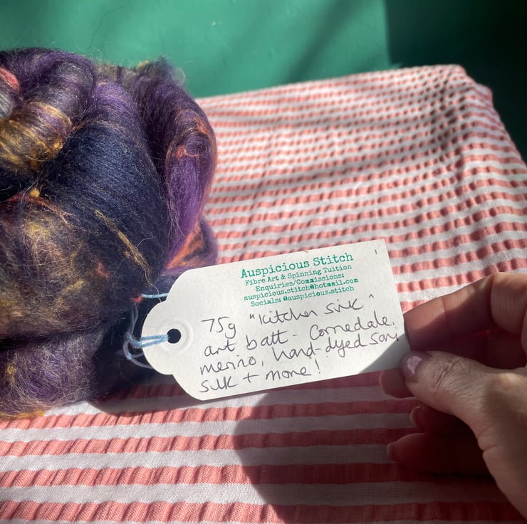 I always dreamed of carding beautiful art batts to spin and felt, I love combining colours that I find pleasing and am over the moon to be able to share these fibre batts with other crafters who don’t perhaps have access to a drum carder or even hand carders.