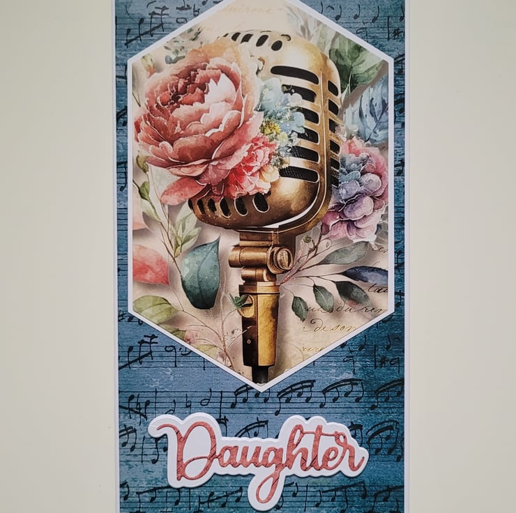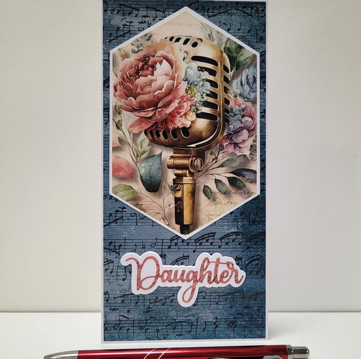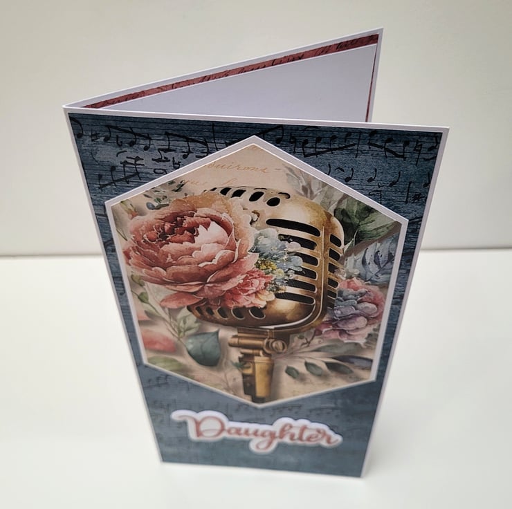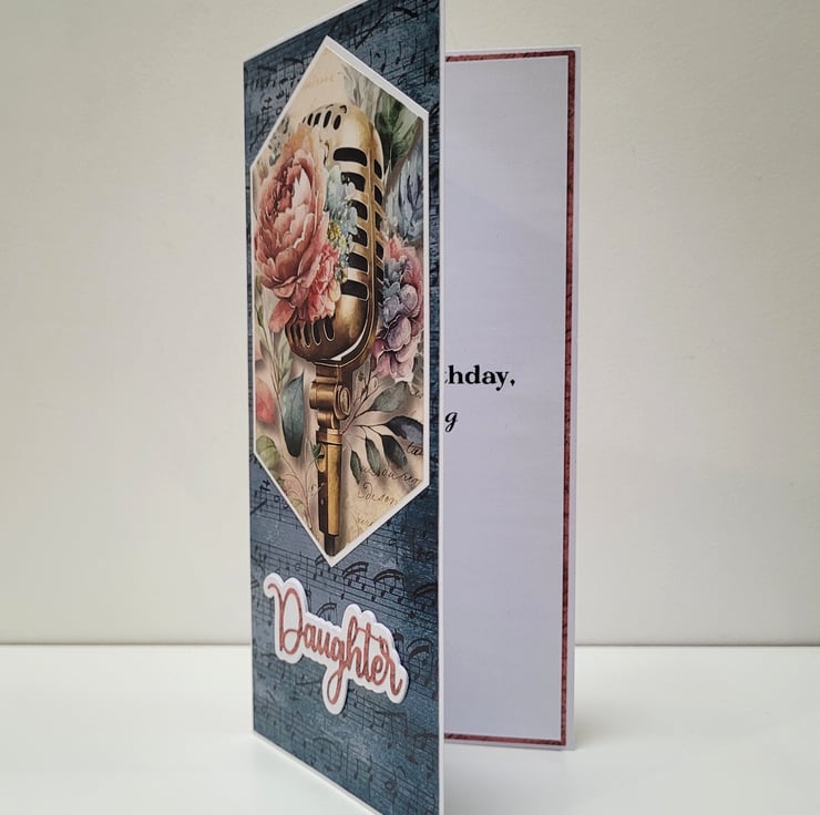 Perfect for daughters who love music, singing, performing, or vintage aesthetics, this unique handmade card adds a meaningful touch to any birthday gift.