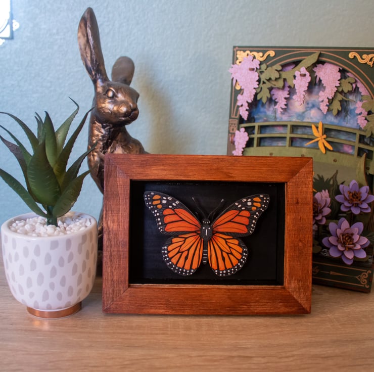 Add a bold touch of nature to your home with this intricately handcrafted Monarch Butterfly wall art, created using layered wood and hand-painted in rich detail.