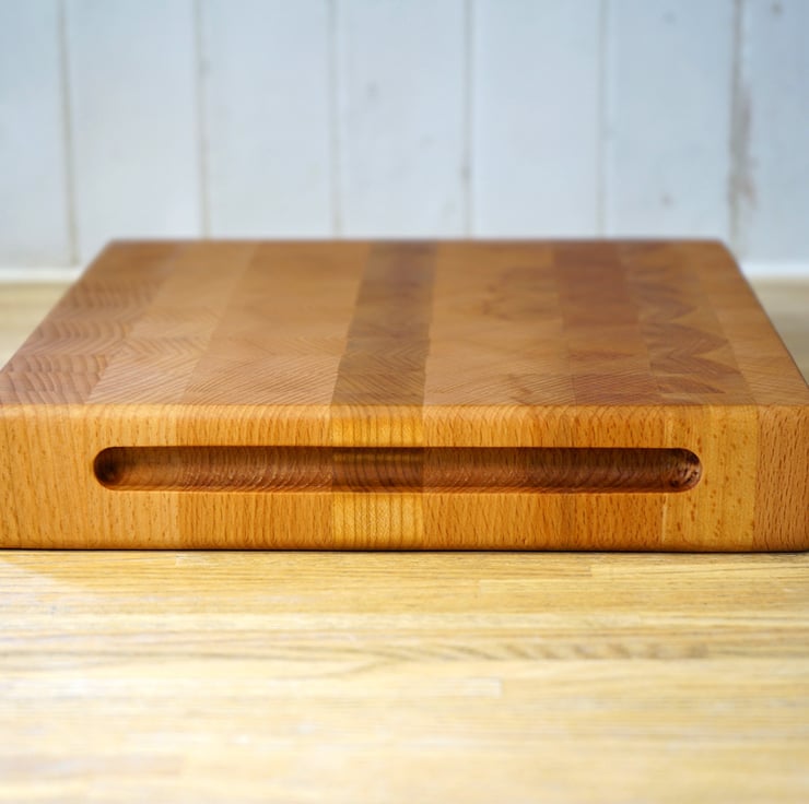 This solid beech wood end grain chopping board/butchers block is built to last and made to be used every single day. Thick, weighty and beautifully balanced, it feels as good as it looks.