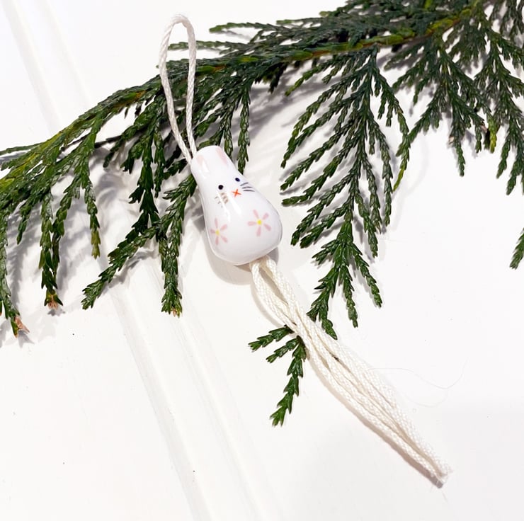These sweet tiny hanging bunnys are 1.5cm wide x 9cm long and are ceramic. They are perfect for decorating your home or adding with a tag to a gift.