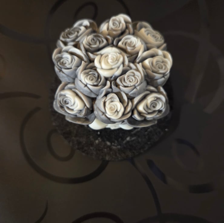 There is a unique kind of magic in the moment I unmould each piece. Seeing the intricate details of the roses emerge, especially the delicate marble effect of grey and white, is what makes this journey so rewarding.