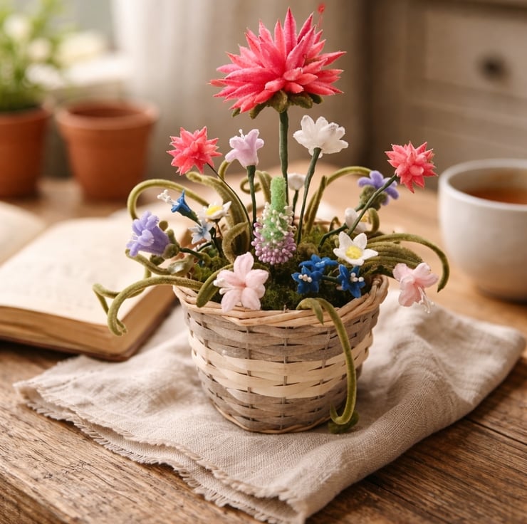 This charming arrangement makes a thoughtful gift for birthdays, Mother’s Day, spring celebrations, or simply as a cheerful decoration for a coffee table, shelf, or desk.