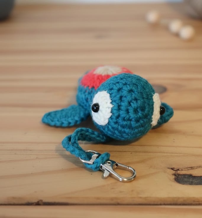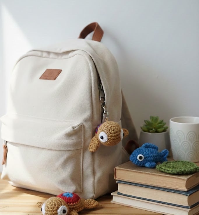Hand-stitched in a quiet corner of the UK, every loop of his star-burst shell was crafted with care and a cup of tea close by. He’s more than just a keychain; he’s a pocket-sized companion designed to bring a bit of seaside calm to your keys or your favourite bag.