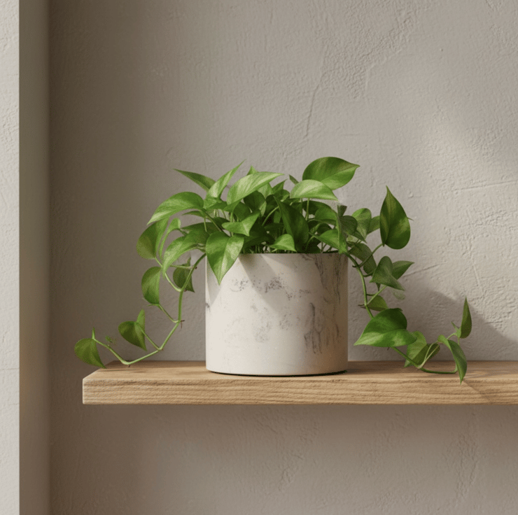 The neutral palette and stone-like finish create a calm, understated look that complements a wide range of interior styles. Paired with lush green foliage, the gentle marbling adds subtle depth and movement while allowing the plant itself to remain the focal point.
