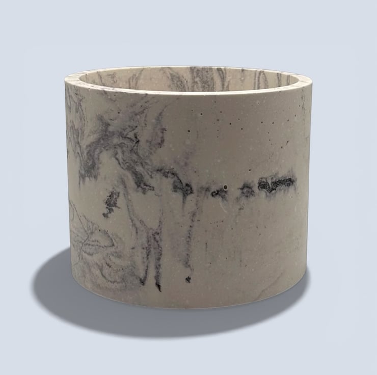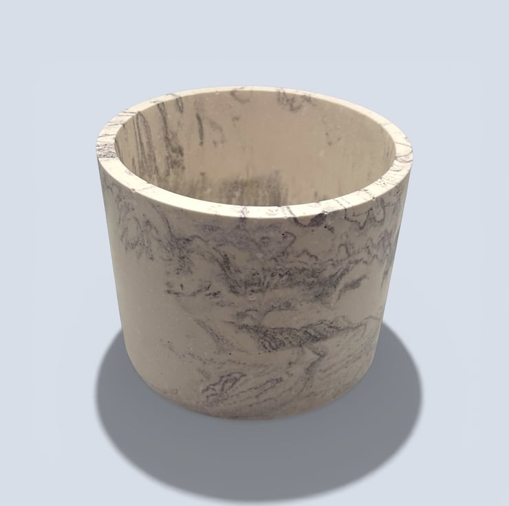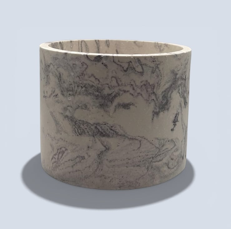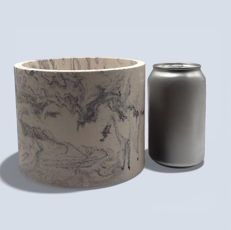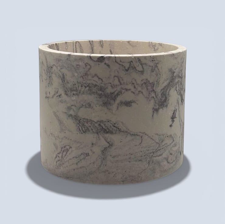 This planter was inspired by the quiet beauty of natural marble and mineral stone. Soft grey and charcoal veining move across the warm stone-toned base in organic patterns that resemble the flowing layers and textures found in polished marble. Each swirl and line develops naturally during the making process, giving every pot its own distinctive character.