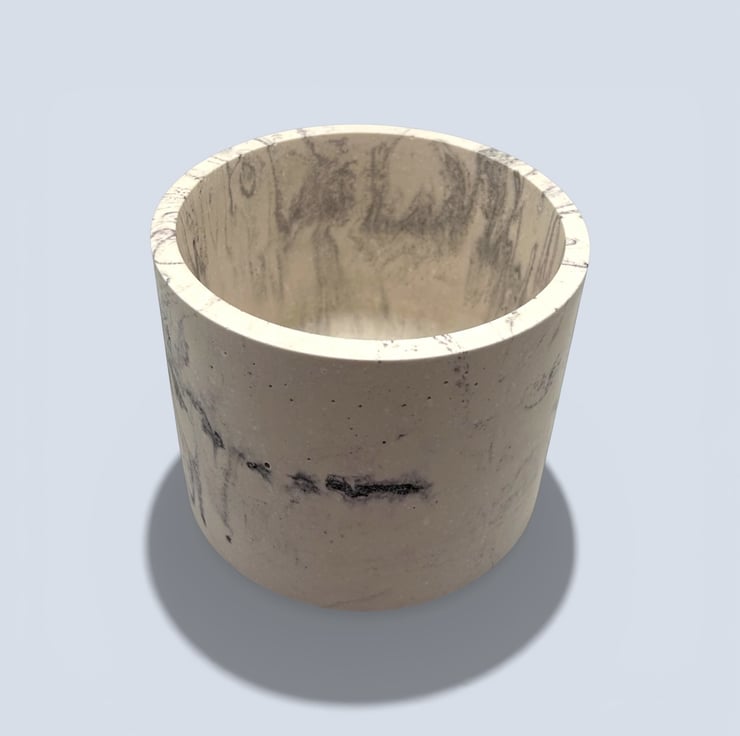 The pot is handmade from a water based mineral material with a smooth, stone-like feel. The exterior has been hand finished through multiple stages and polished with a wax sealer for a soft satin finish, and the interior is sealed with varnish for durability. Each piece is individually made and finished by hand and may feature visible surface texture, air bubbles, colour variation and slight size or shape differences, making it unique. Pads on the base help protect surfaces.