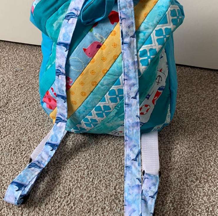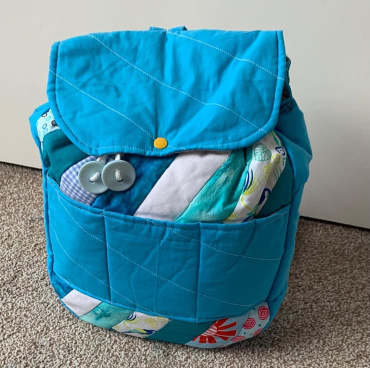 I enjoyed making this colourful rucksack. A very useful item to have on holiday or just a day out.