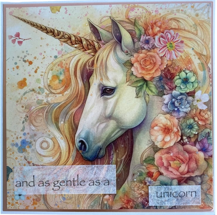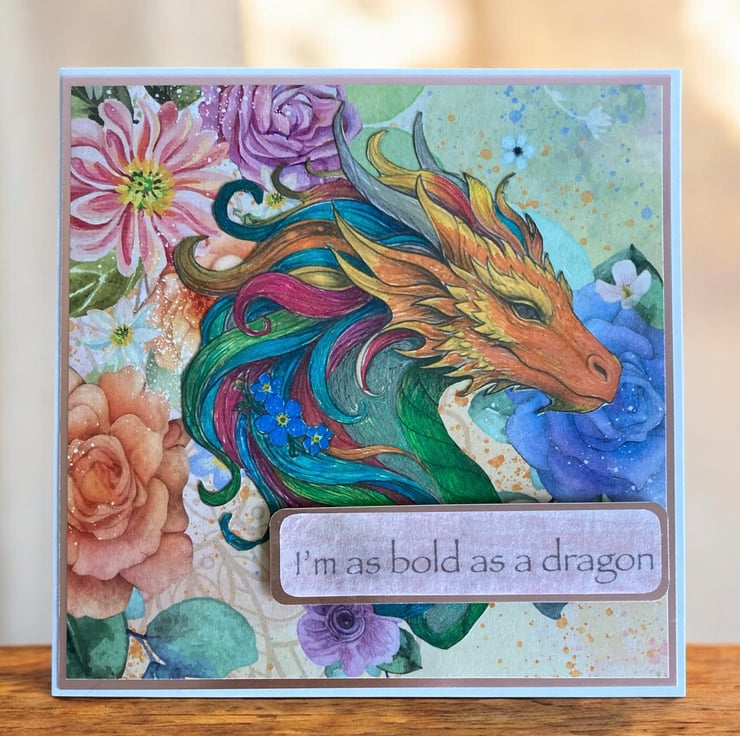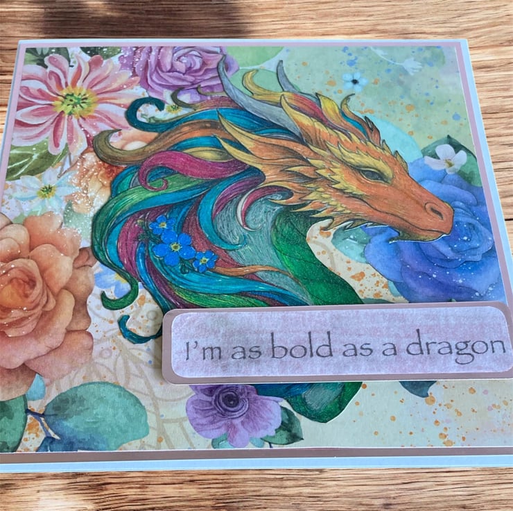 Bold as a Dragon Gentle as a Unicorn Card, Hand Decorated 6x6 Inspirational Fantasy Greeting Card.