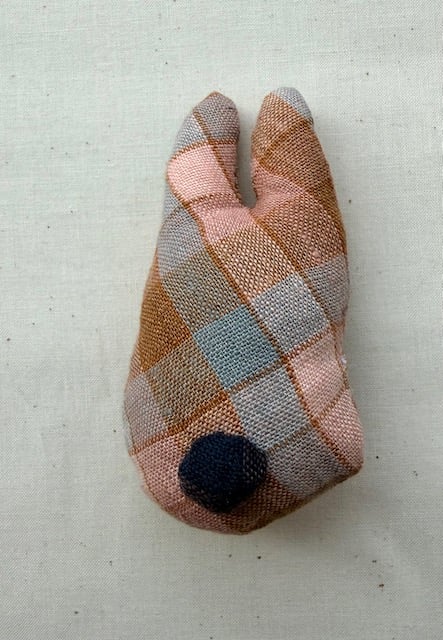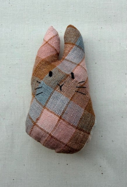 Remnant Rabbit is a beautifully handmade, unique soft toy. The perfect size to slip into a pocket, to provide a bit of reassurance or emotional support when a person is feeling far from home. Each rabbit is filled with toy wadding and also some lavender so its smell can help to bring a moment of calm. It also features a little tail which is a nice tactile addition for fiddling with. Remnant Rabbit is made with offcuts from previous sewing projects, recycled toy wadding and time, so it is very eco friendly.