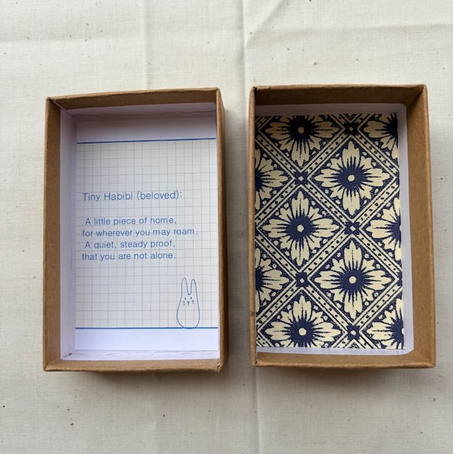 Sometimes we can’t be with the people we love, when apart it is nice to have a reminder that we are cared for, we are a habibi/habibti (beloved one). This is the concept behind the Remnant Rabbit – a tiny habibi, something that can be taken with a person on their travels to remind them of their loved ones at home, and that they are loved. It is why it makes the perfect gift for someone special.