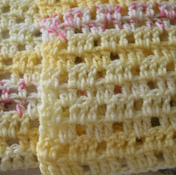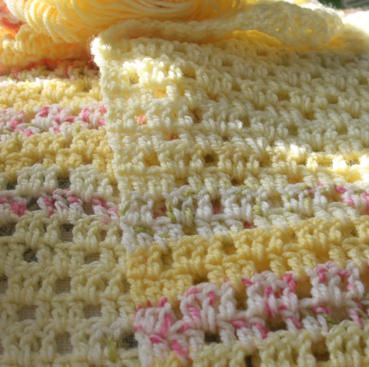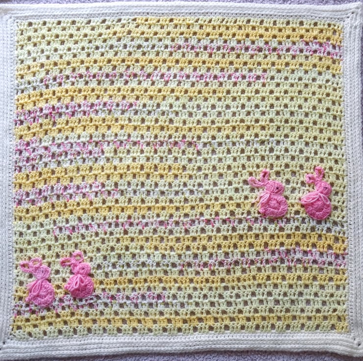 I was drawn to a yellow blossom blanket pattern and thought a few little bunny rabbits would be perfect for it too.