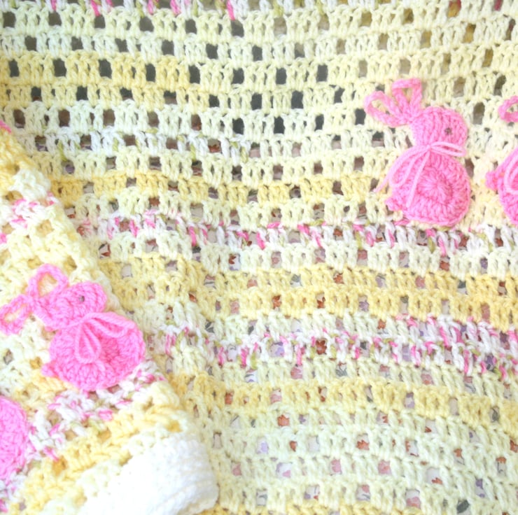 I was drawn to a yellow blossom blanket pattern and thought a few little bunny rabbits would be perfect for it too.