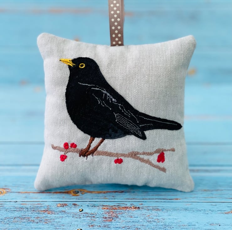 We are a nation of Bird lovers and this beautiful Raw Edged Appliquéd Blackbird bird design would make an ideal gift for Bird lovers, Birthdays, Mother's day or a Thank You gift.